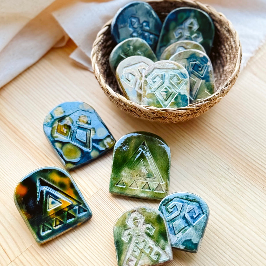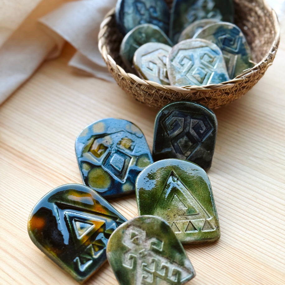 Anadolu’nun zanaatkârlık mirasından ilhamla şekillenen bu minik seramik broşlar, geleneksel halı motiflerinin çağdaş bir yorumudur. Her biri, geçmişin izlerini taşıyan ama bugünün elleriyle yeniden yorumlanan eşsiz parçalar olarak karşınıza çıkar.