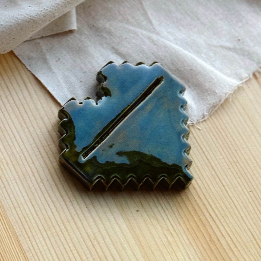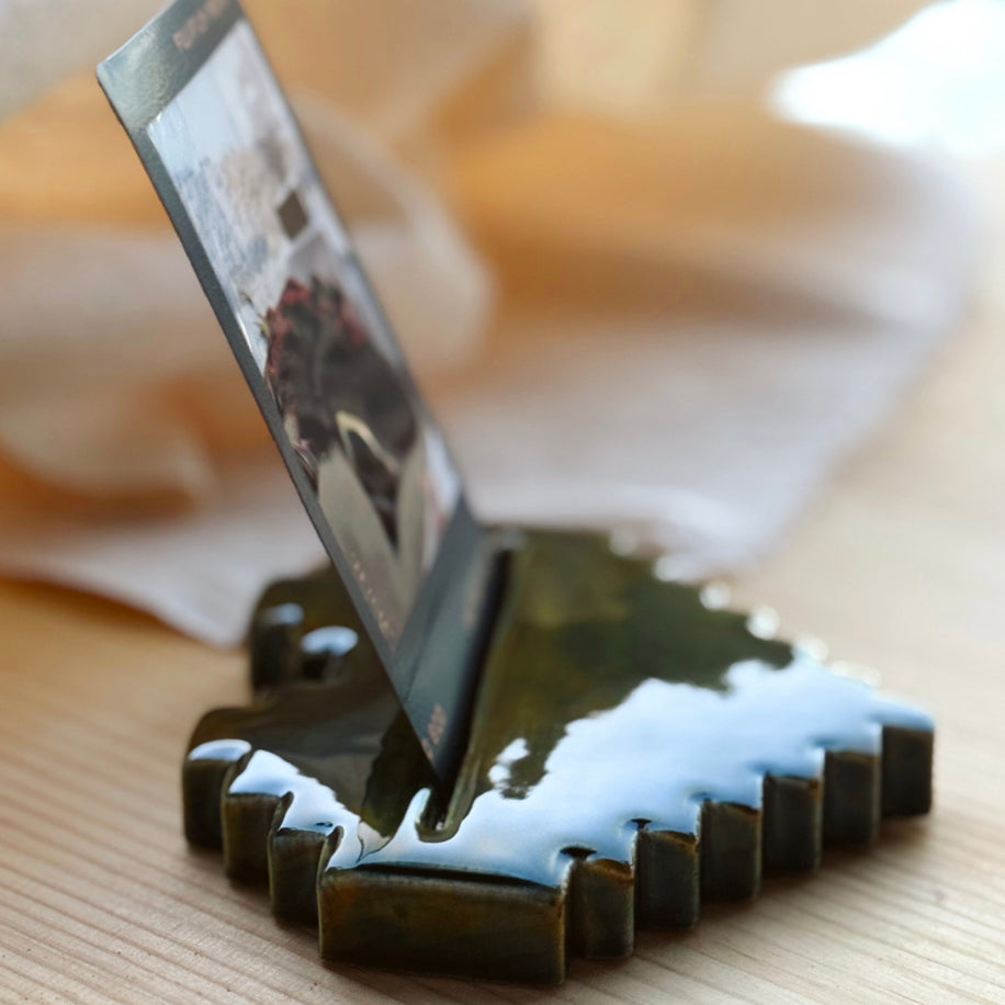 Anadolu kilimlerinden ilham alan bu özel parça, kalp formunu kültürel bir motifle buluşturuyor. El yapımı seramikten üretilen bu kart/fotoğraf tutucu, hem işlevsel hem de dekoratif bir obje olarak öne çıkar.